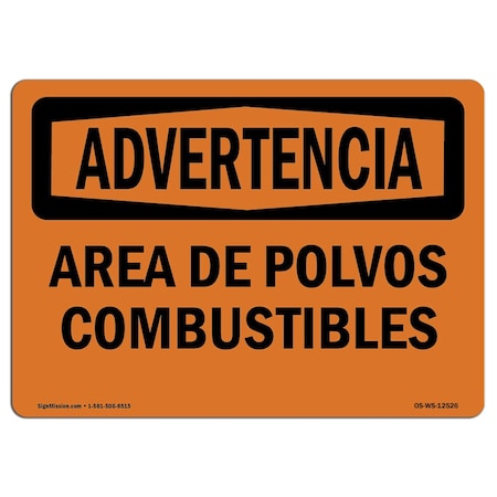 OSHA WARNING Sign, Combustible Dust Area Spanish, 10in X 7in Decal