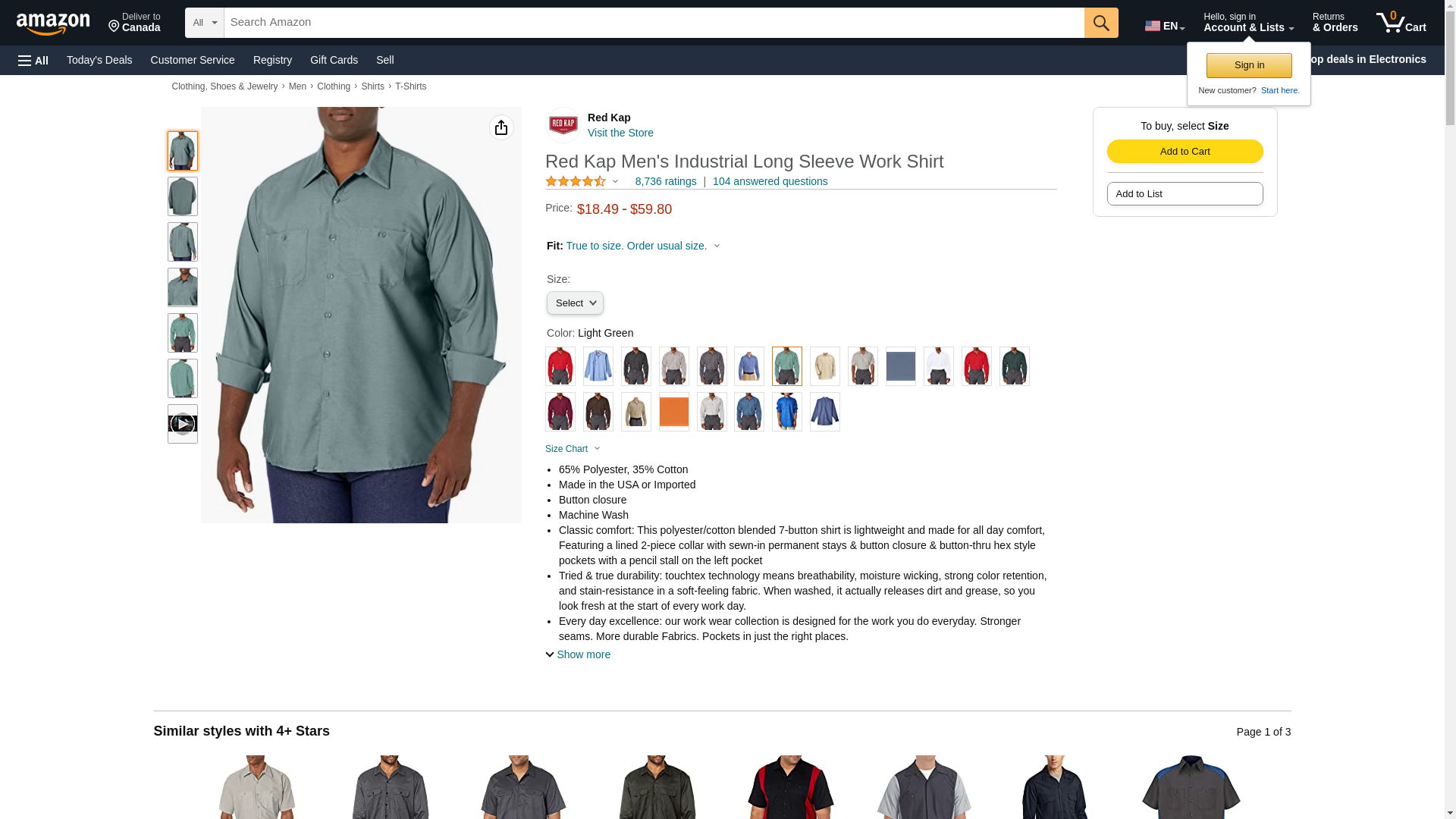 Red Kap Men's Industrial Work Shirt, Regular Fit, Long Sleeve, Light Green, 2X-Large