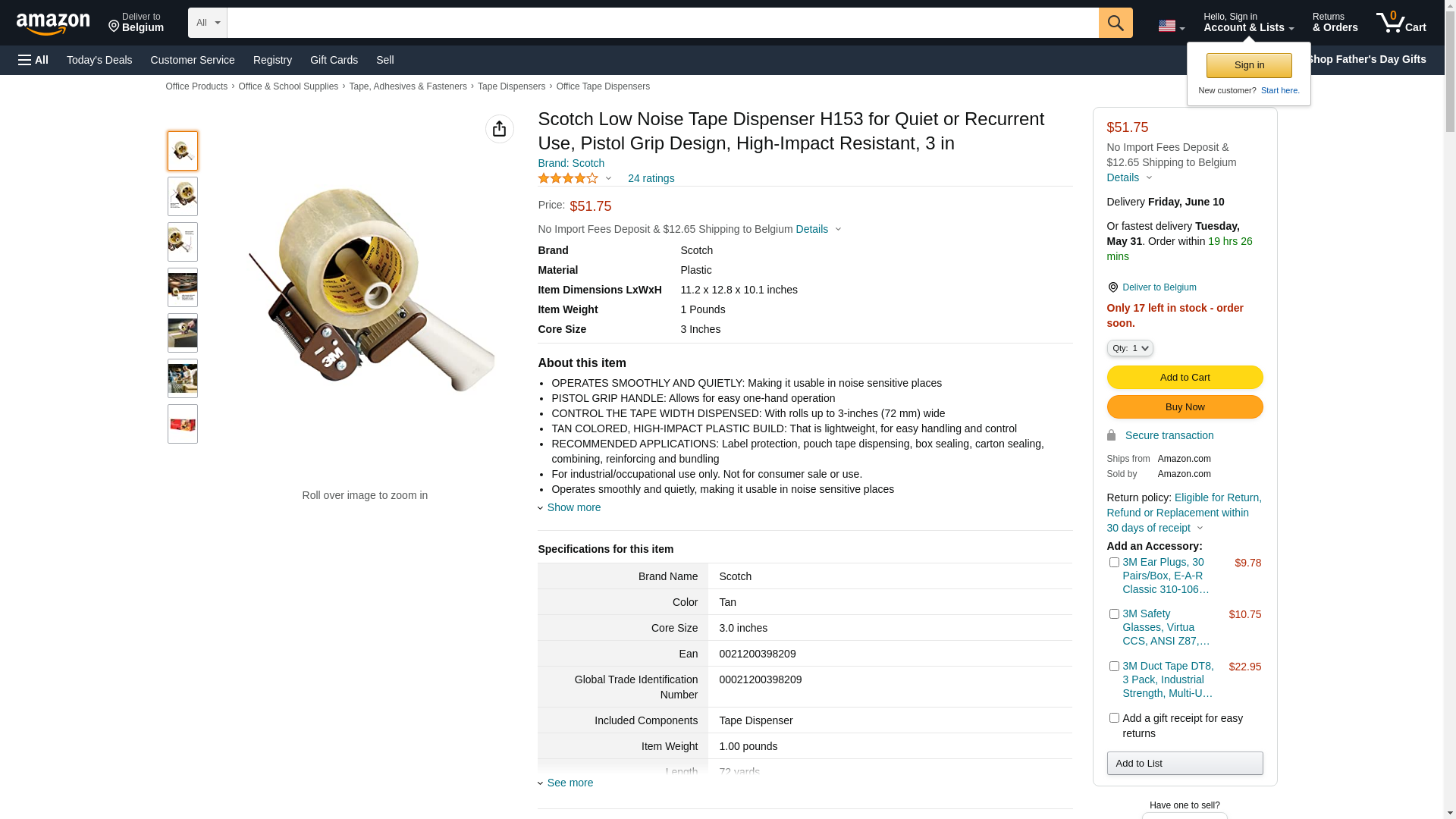 Scotch Low Noise Tape Dispenser H153, 72 mm. 3 Inch (72 mm) maximum tape width capacity. Lightweight carton sealing d...