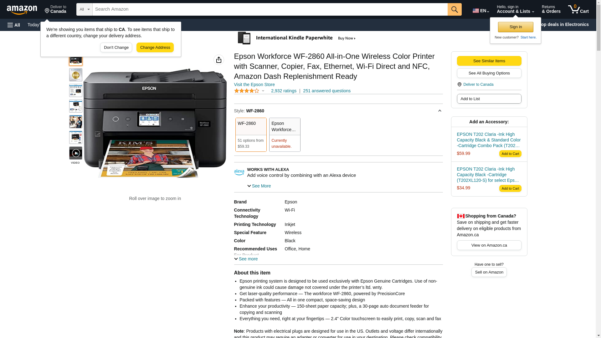 Epson Workforce WF-2860 All-in-One Wireless Color Printer with Scanner, Copier, Fax, Ethernet, Wi-Fi Direct and NFC, Amazon Dash Replenishment Ready