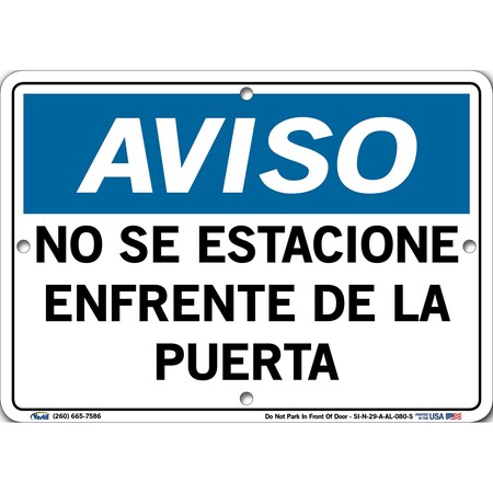Vestil Notice SignSI-N-29-A-AL-080-S 29 10.5X7.5 Aluminum .080 Do Not Park in Front of Door NO SE ESTACIONE ENFRENTE DE LA PUERTA
