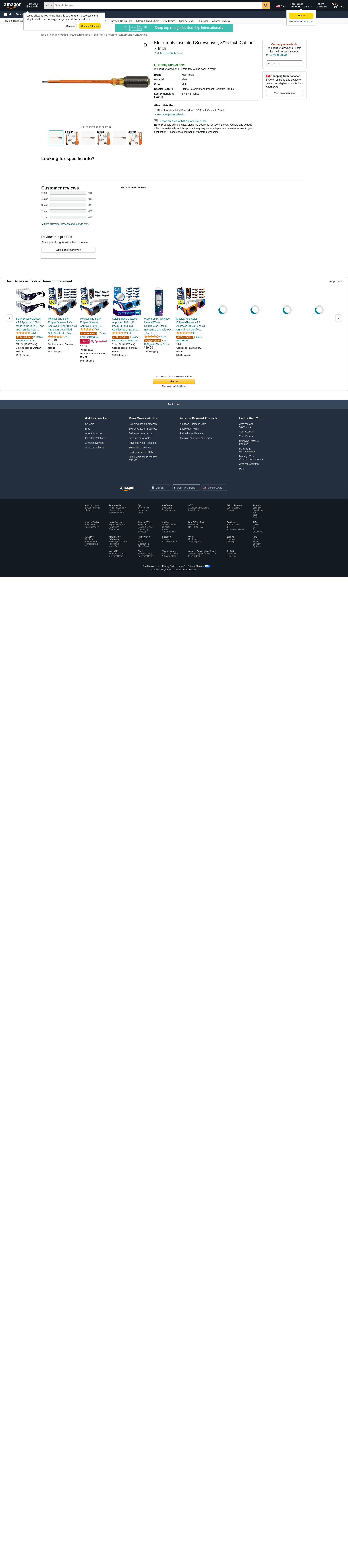 - Klein Tools Insulated Screwdriver, 3/16-Inch Cabinet, 7-Inch