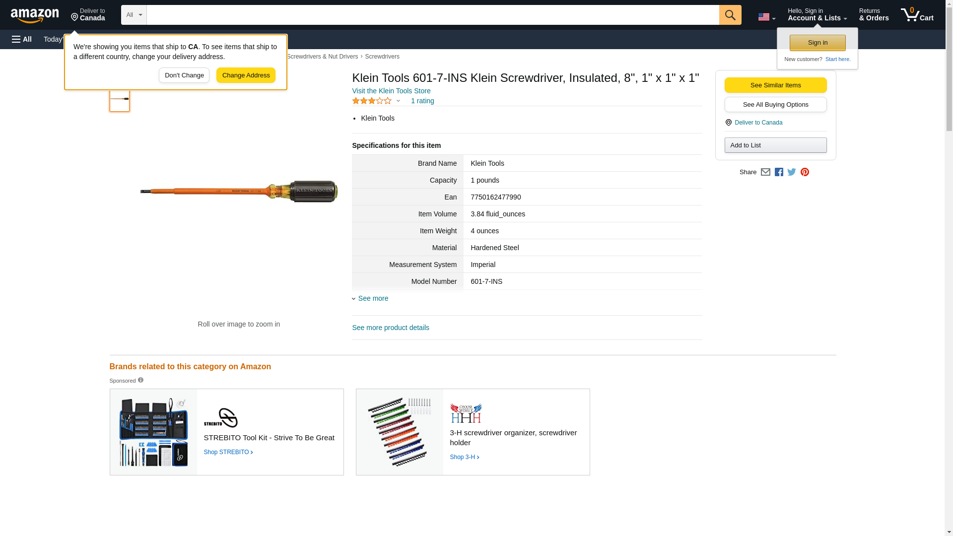 | ToolUp.com | KLEIN 601-7-INS | 1 | -2 | 1 | 1 @ $19.99 |