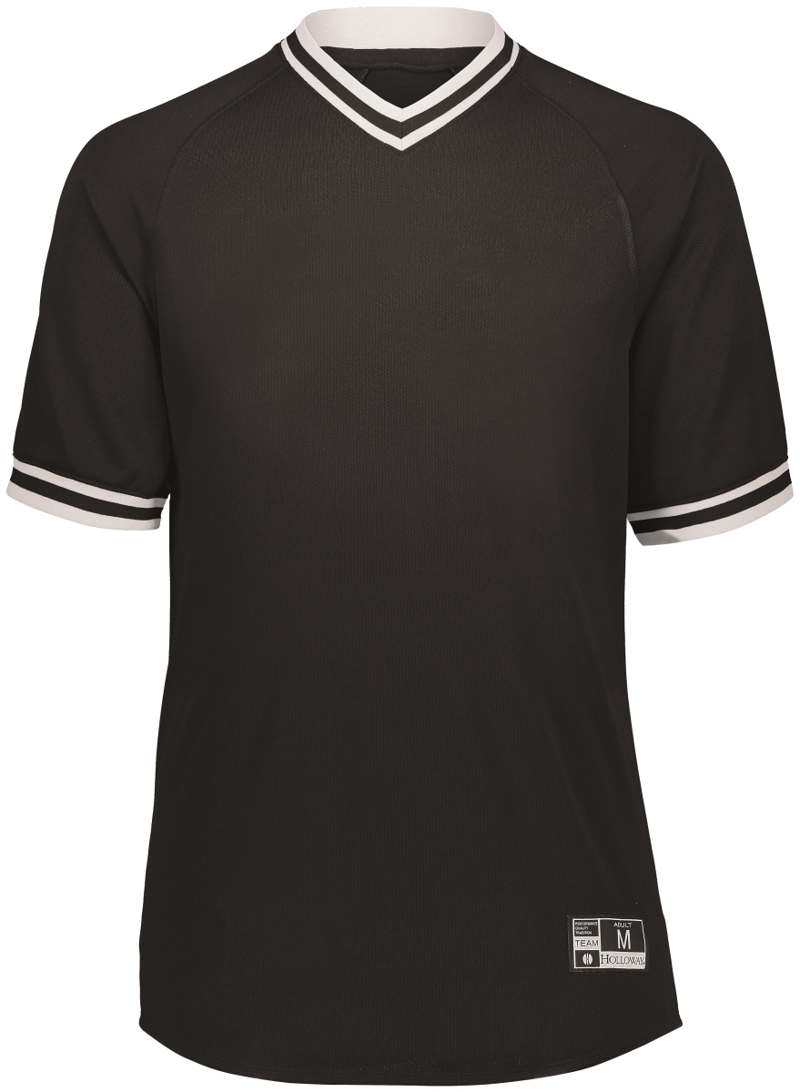Holloway 221021.420.S Adult Retro V-Neck Baseball Jersey, Black & White - Small