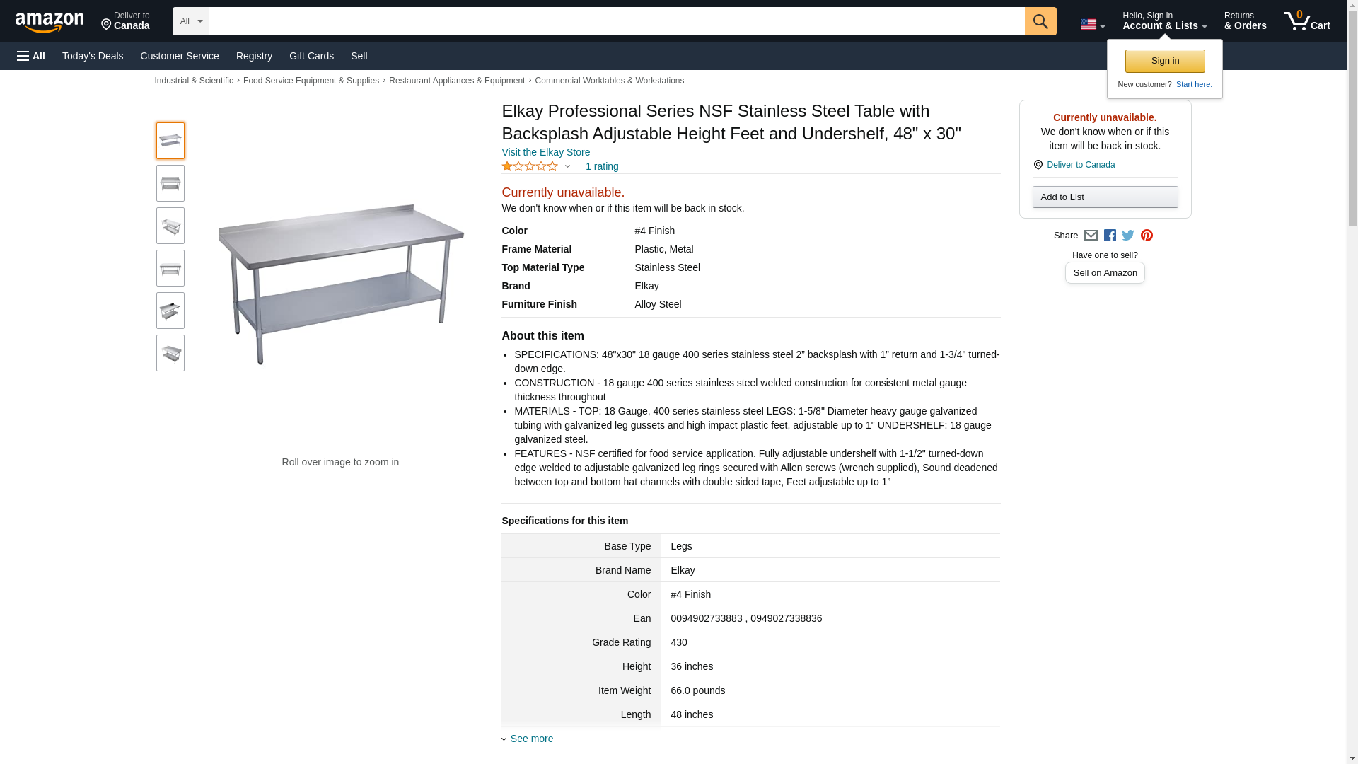 Elkay Professional Series NSF Stainless Steel Table with Backsplash Adjustable Height Feet and Undershelf, 48" x 30"