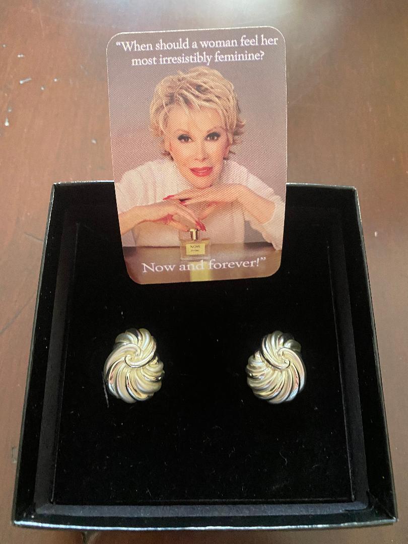 Designer Jewelry JRSILVERSWIRL Joan Rivers Earring white gold silver disc crystal clear white boxed NWT