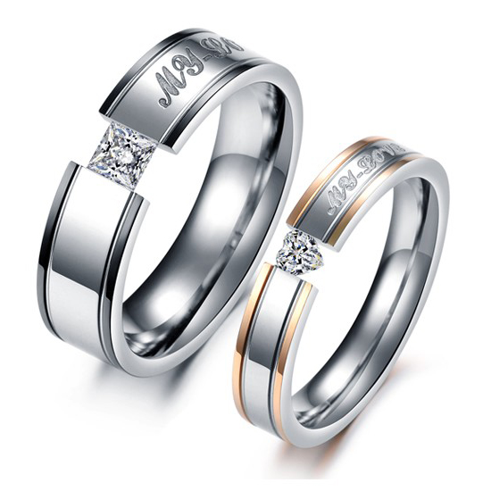 CET Domain SZ17-R128W-8 Titanium Steel My Love Couple Rings- Women-Size 8