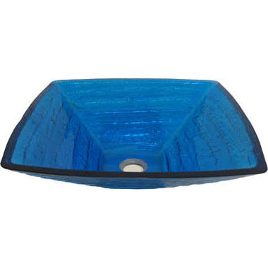 NOVATTO TIS-286BBN FRESCO 17 INCH BLUE GLASS VESSEL BATHROOM SINK, BRUSHED NICKEL
