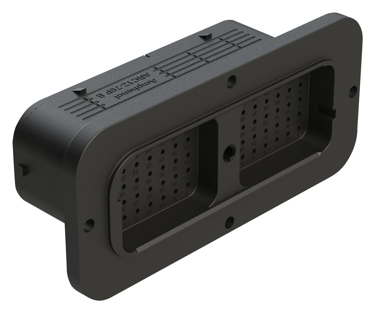 Amphenol Sine/tuchel 70 Position Receptacle, Pin, Contact Size Size 16, Threaded Insert For Jackscrew, Keyed B, Flanged, Reduced Diameter Rear Seal (Green), Black Body, DustCapacitor Included Rohs Compliant: Yes - ARC12-70PBR