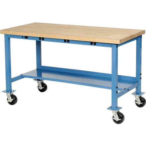 Global Industrial™ 72 x 36 Mobile Production Workbench - Power Apron, Shop Top Safety Edge Blue