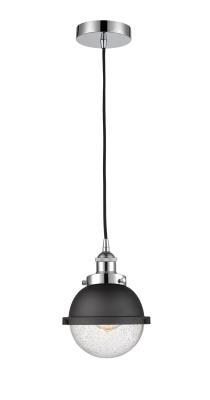INNOVATIONS 616-1PH-PC-HFS-64-BK Edison 1 7.25 inch Multi Pendant Polished Chrome. Style: Art Deco, Contemporary. Collection Name: Downtown Urban. Metal Finish(Body): Polished Chrome. Metal Finish(Shade): Matte Black. Material: Steel, Cast Brass, Glass. Dimension(in): 10.25(H) x 7.25(W) x 7.25(Dia). Bulb: (1)60W Medium Base Incandescent(Not Included). Min/Max Height(Fixture Height with Shade,Cord or Included Stems & Canopy): 13.25/130.25. Voltage: 120. Dimmable: Yes. Color Temperature (Kelvin): 2200. Color Rendering Index (CRI): 99.9. Lumens: 220. Life Expectancy (Hours): 2000. Glass Shade Description: Matte Black Hampden 6" with Seedy glass. Glass Type: Transparent. Shade Shape: Globe/Orb. Glass or Metal Shade Color: Matte Black Hampden 6" with Seedy glass. Shade Material: Steel and Glass. Metal Shade Description: Matte Black Hampden 6" with Seedy glass. Shade Dimension(in): 7.25(W) x 6.25(H). Fitter Measurement (Glass Or Metal Shade Fitter Size): 3.25 inch Fitter. Sloped Ceiling Compatible: Yes. California Proposition 65 Warning Required: Yes. UL/ETL Certification Type: Damp Location.