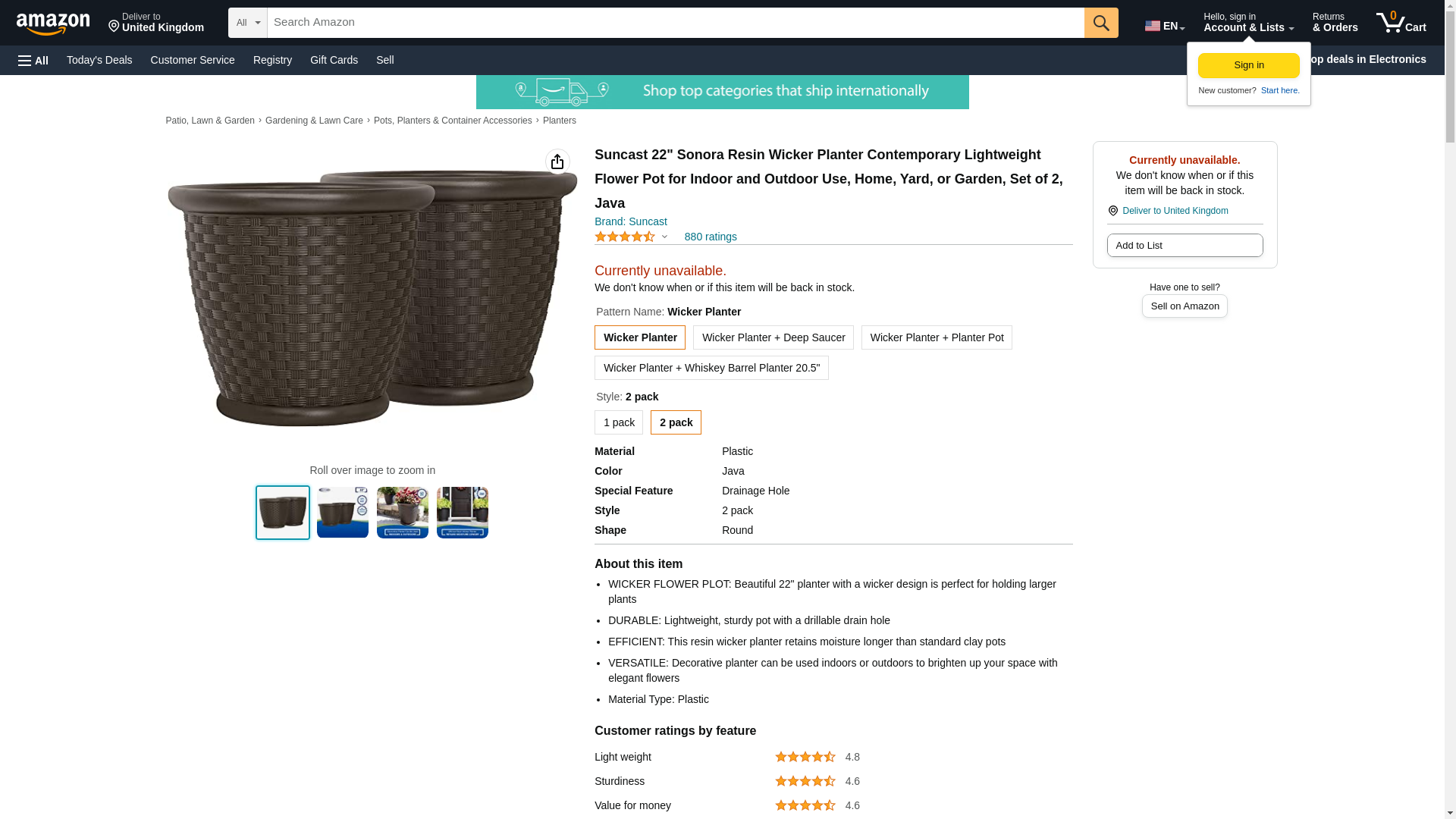 Suncast 22" Sonora Resin Wicker Planter Contemporary Lightweight Flower Pot for Indoor and Outdoor Use, Home, Yard, or Garden, Set of 2, Java
