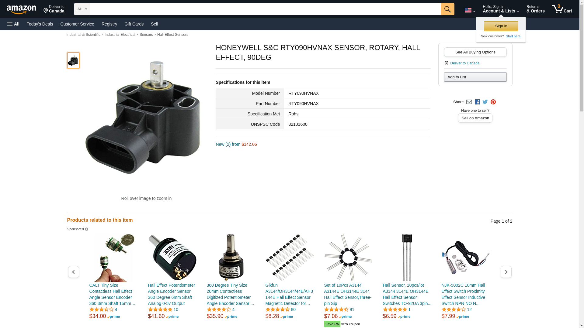 Honeywell Sensor, Rotary, Hall Effect, 90Deg - RTY090HVNAX
