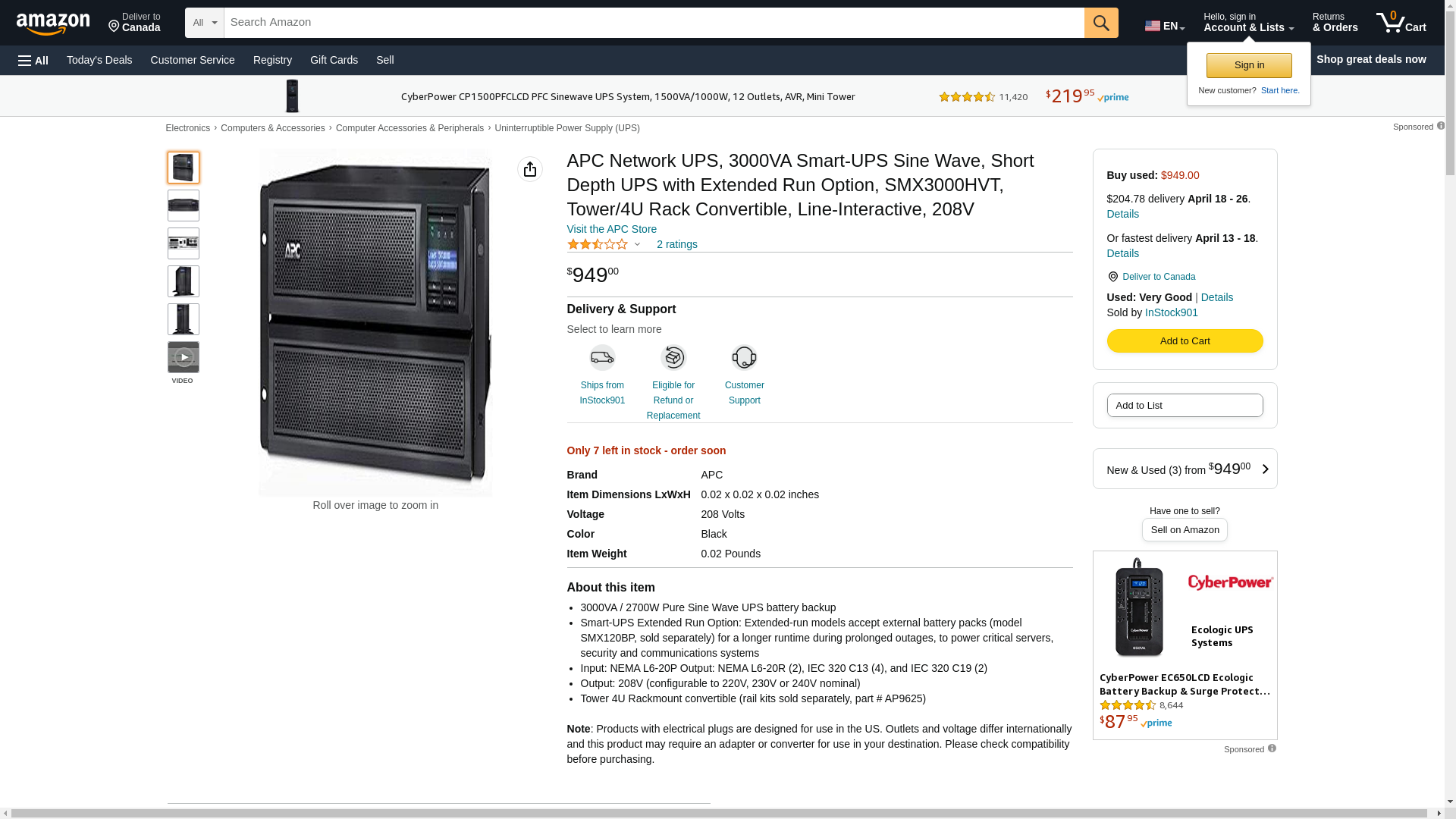 ![]() homeessentialsdirect.com | SMX3000HVT | 1 | -2 | 1 | 1 @ $2371.96 |