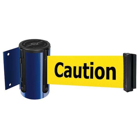 Tensabarrier 896-STD-23-STD-NO-YAX-C - Blue Standard Mount Wall Unit with Standard Belt End, 2" Wide, 7'6" Length Yellow Caution Do Not Enter Belt, 4.5" Height, 3.75" Wide, 2.75" Length