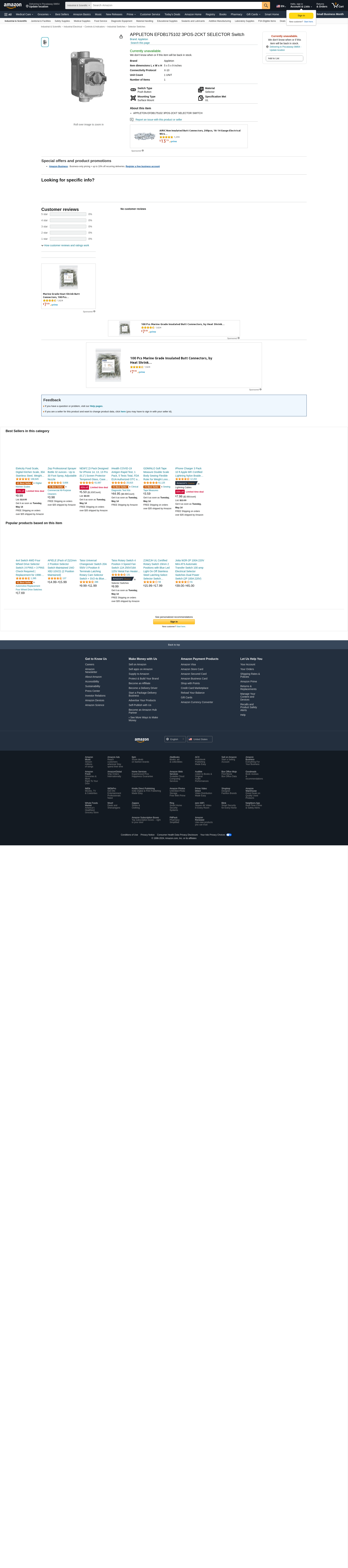 Appleton EFDB175-102 Push Button Station, 1 Gang, 10 Amp, 600V, 3 Position, 2 Circuit, Dead-End, 3/4"