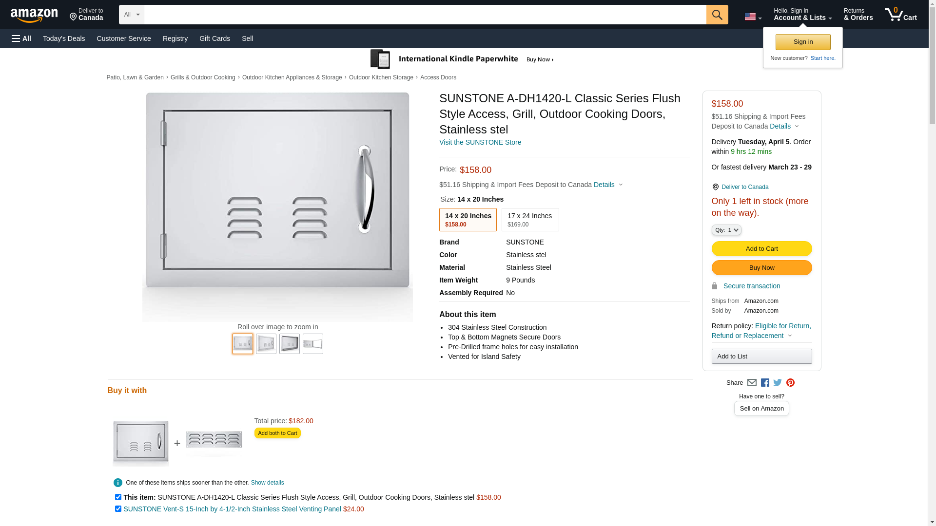 SUNSTONE A-DH1420-L Classic Series Flush Style Access, Grill, Outdoor Cooking Doors, Stainless stel