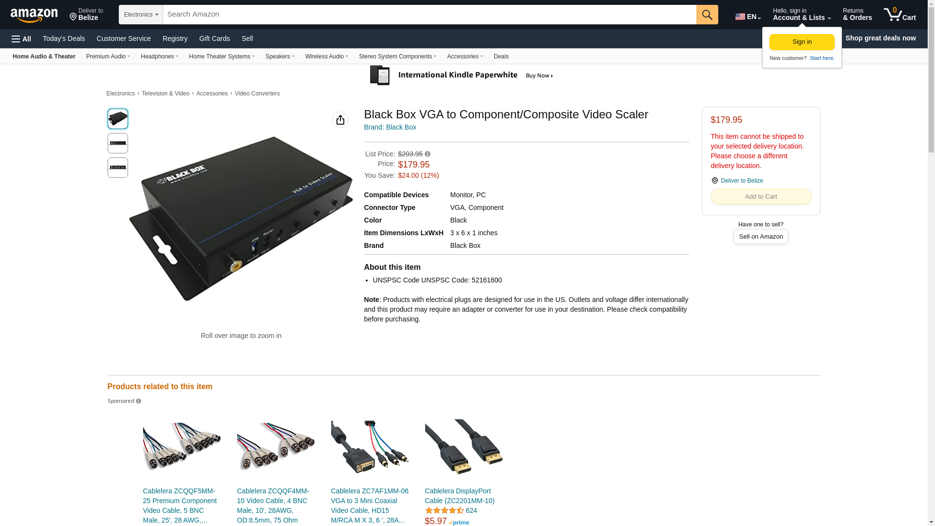 Black Box AVSC-VGA-VIDEO VGA TO COMPONENT/COMPOSITE VIDE O SCALER