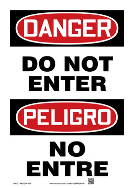 Bilingual OSHA Danger Safety Sign: Do Not Enter 14" x 10" Aluminum - SBMADM139VA - Jendco Safety Supply