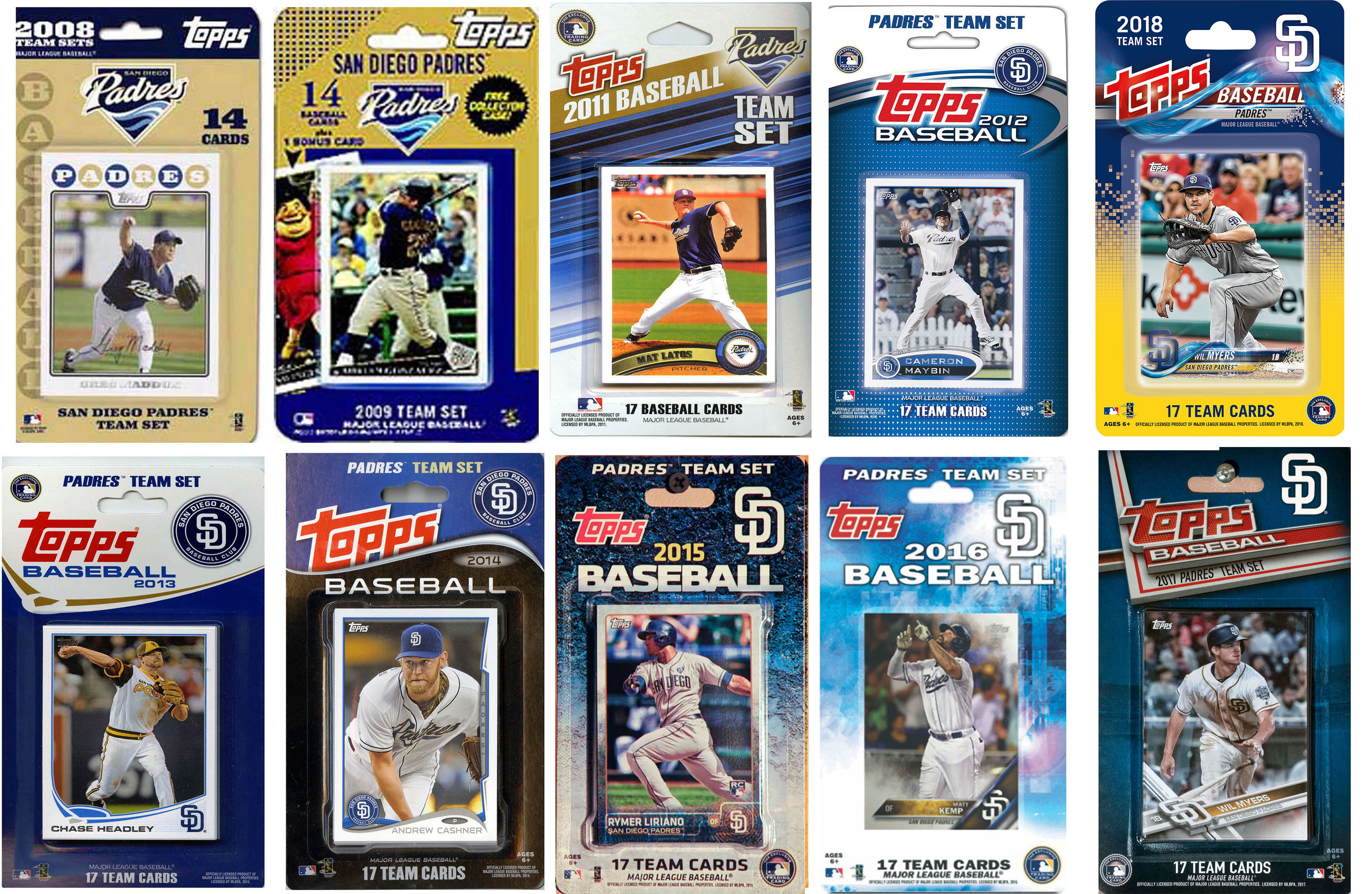 C & I Collectables PADRES1018TS 2018 MLB San Diego Padres 10 Different Licensed Trading Card Team Sets
