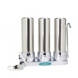 CRYSTAL QUEST Countertop Replaceable Triple Fluoride Water Filter System (Stainless Steel)