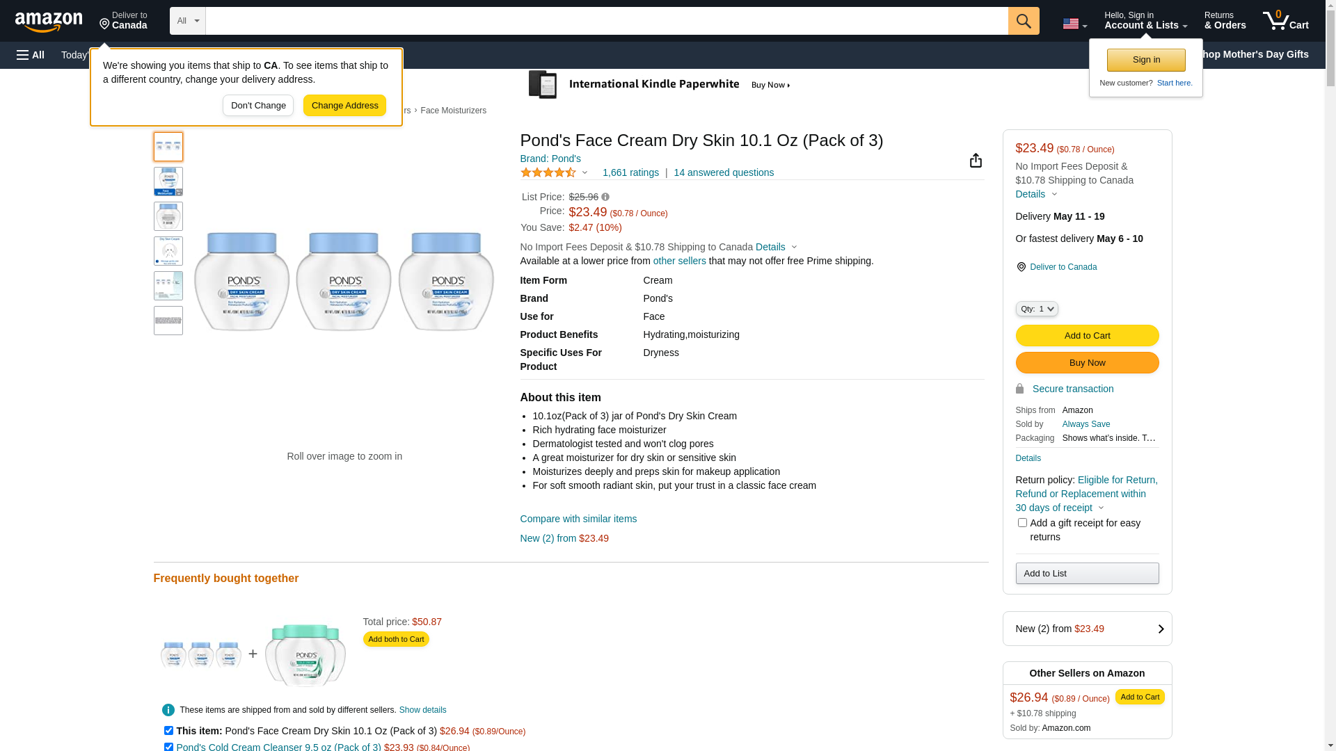 - 10.1oz(Pack of 3) jar of Pond's Dry Skin Cream
