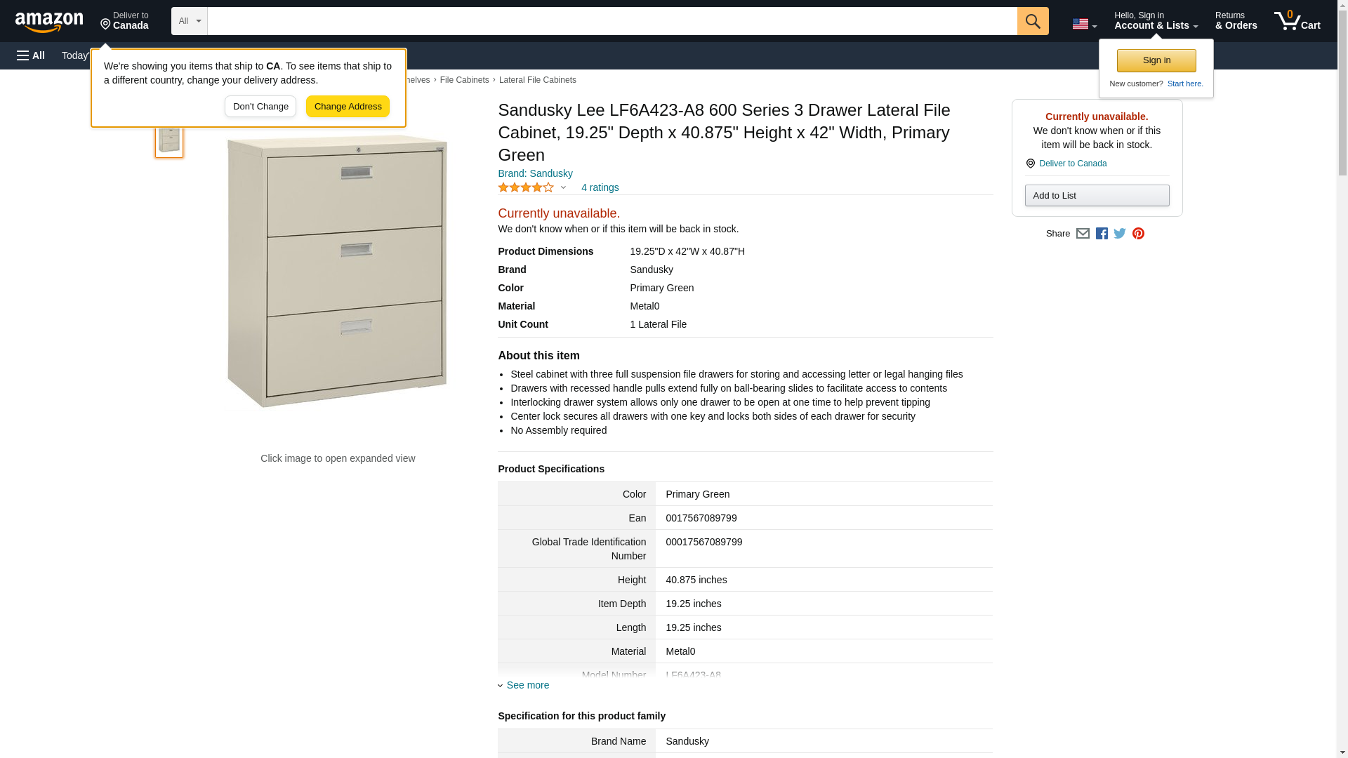 Sandusky Lee LF6A423-A8 600 Series 3 Drawer Lateral File Cabinet, 19.25" Depth x 40.875" Height x 42" Width, Primary ...