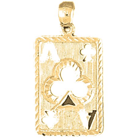 18K Yellow Gold Playing Cards, Ace Of Clubs Pendant - 30 mm
