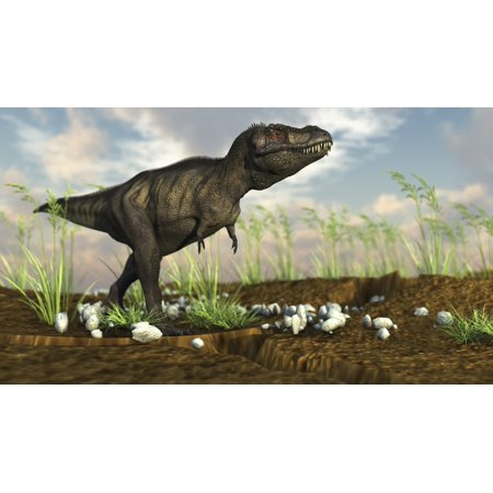 Tyrannosaurus Rex walking across desert terrain Poster Print