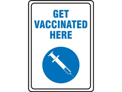 Accuform Get Vaccinated Here Surface Mounting Sign, 10" x 14", White/Blue/Black (MBDX515VS) | Quill.com