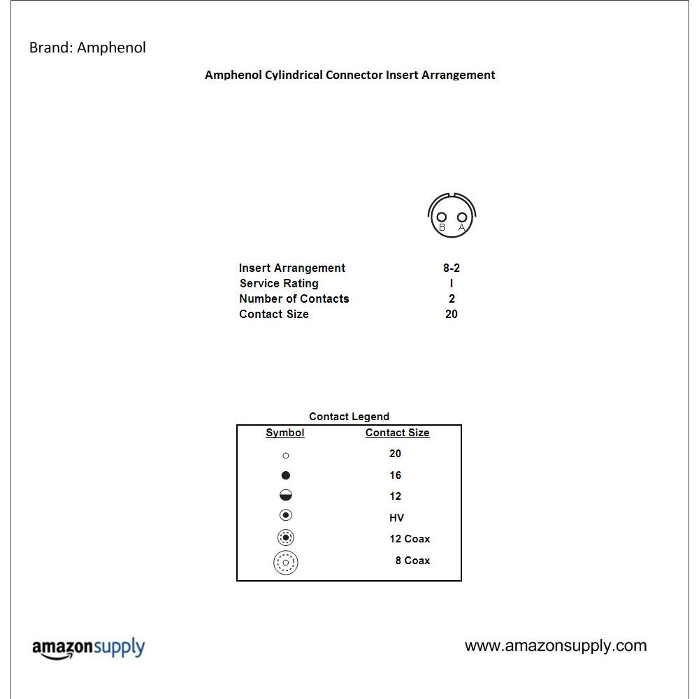 Amphenol Industrial PT06E-8-2P Circular Connector Pin, Environmental Resisting, Bayonet Coupling, Solder Termination, Straight Plug, 8-2 Insert Arrangement, 8 Shell Size, 2 Contacts
