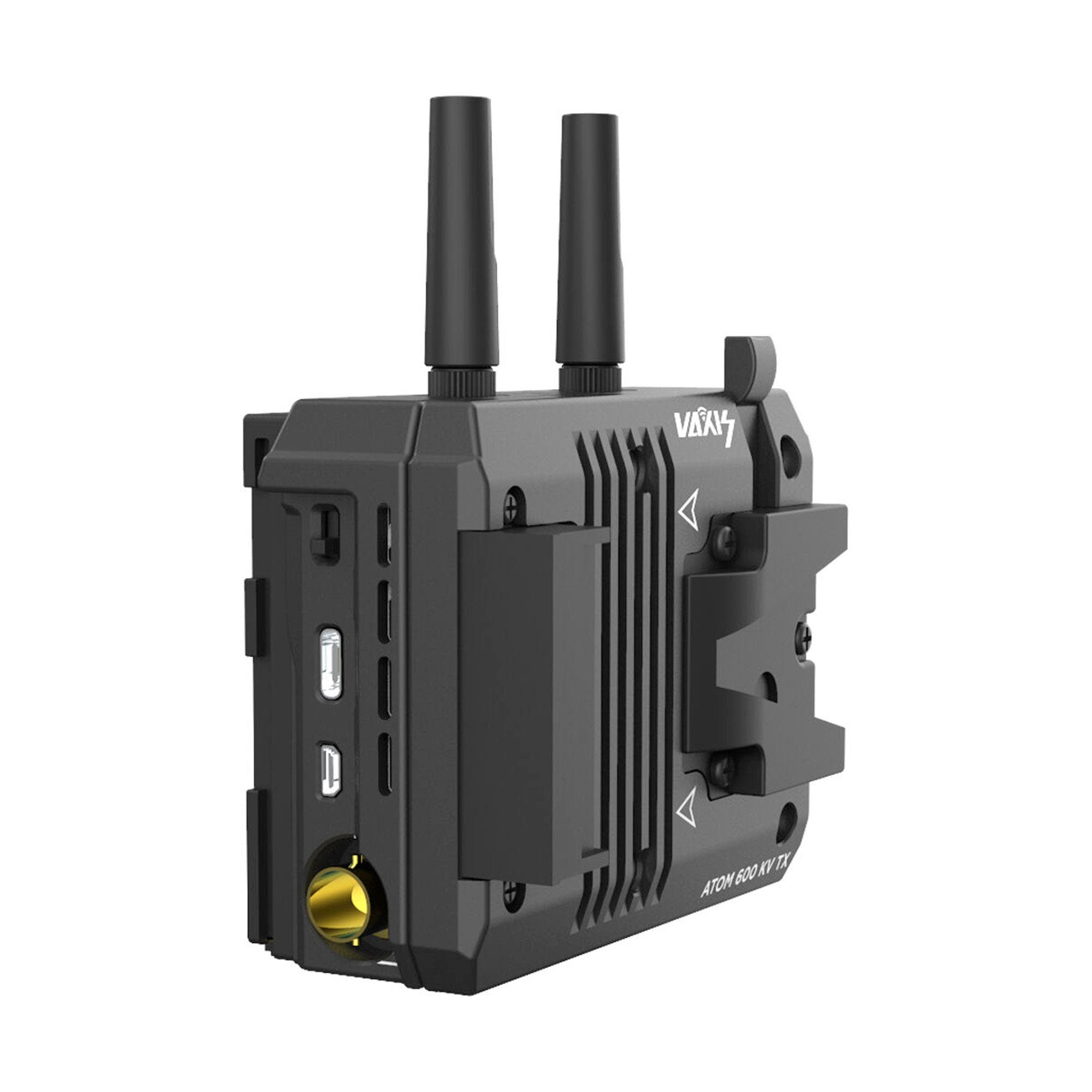 Wirelessly transmit and receive up to 1080p60 video to monitor your RED KOMODO camera with this ATOM 600 KV Wireless TX/RX Kit from Vaxis. This transmitter and receiver kit allows you to wirelessly transmit 1080p60 video signals to the Vaxis ATOM 500 SDI receiver with less than 80 ms latency. The transmitter sends a powerful line-of-sight signal up to 600'.The transmitter features one SDI input and SDI and HDMI loop outputs, and it also supports multicast over Wi-Fi to up to three mobile iOS devices using the Vaxis Vision app for monitoring. The ATOM 500 receiver features one SDI and one HDMI output for a monitor, switch, or other video destination. They both feature a bright, clear OLED display and both feature smart cooling fan that can be turned on and off to prevent noise during your production.The transmitter mounts onto the KOMODO's dual-battery plate and powers using a V-mount plate for a separately available high-capacity V-mount battery, and it will also pass through power to the camera. The plate can be installed in a horizontal or vertical configuration that can be changed by the user by removing four screws on the battery plate. The receiver is powered using a USB Type-C power source or by using its L-series battery plate. Transmitter unit transmits up to 1080p60 wireless video up to 600' line of sight Transmits with less than 80 ms latency Transmitter features one SDI input and SDI and HDMI loop outputs; receiver features one