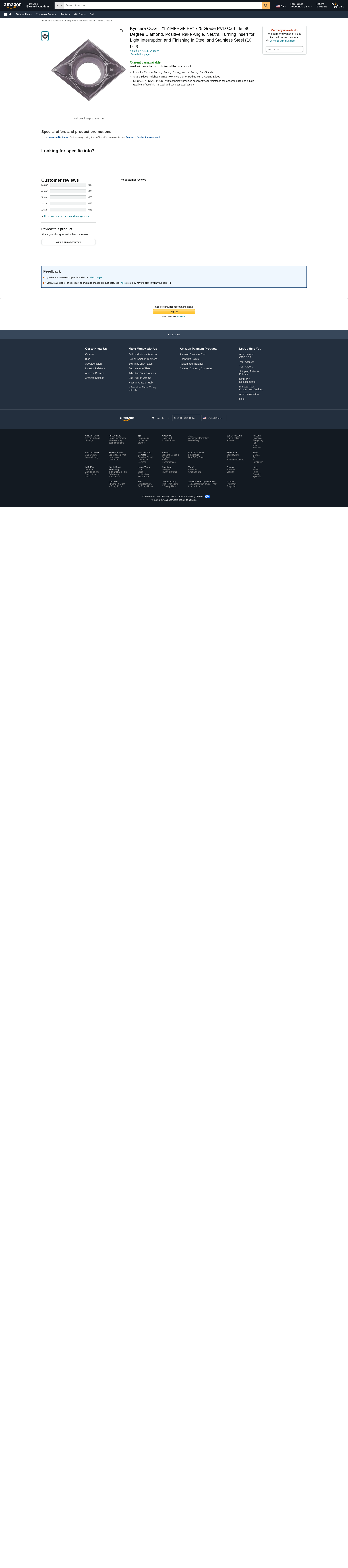 Kyocera CCGT 2151MFPGF PR1725 Grade PVD Carbide, 80 Degree Diamond, Positive Rake Angle, Neutral Turning Insert for Light Interruption and Finishing in Steel and Stainless Steel (10 pcs)