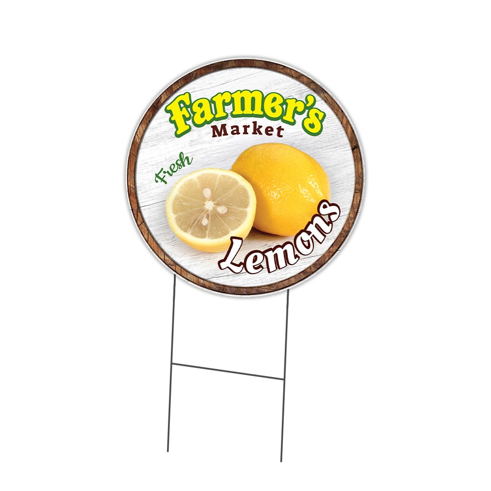 Corrugated Plastic Sign With Stakes 16in Circular-Farmers Market Lemons