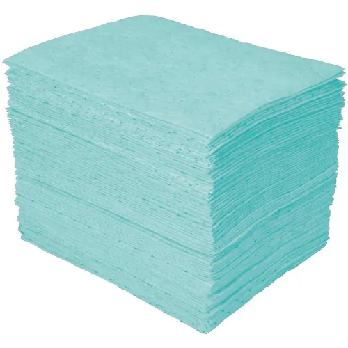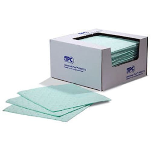 Product Type Sorbent Pad, Fluids Absorbed Harsh Chemicals, For Use With Chemical or Metal Type Chemical, Size 15 in x 19 in, Volume Absorbed Per Pad 25 oz, Volume Absorbed per Pkg. 20 gal, Color/Pattern Green, Material Polypropylene, Perforated Yes, Perforated Size 7 1/2 in x 19 in, Package Quantity 100