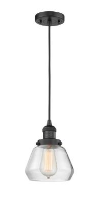 This 1 light Mini Pendant from the Franklin Restoration Fulton collection by Innovations Lighting will enhance your home with a perfect mix of form and function. The features include a Matte Black finish applied by experts. Product Features Include: Brand: Innovations Lighting, Collection: Franklin Restoration Fulton, SKU: 201C-BK-G172-LED, UPC: 638932465798, Category: Mini Pendant, Finish: Matte Black, Glass: Clear Fulton, Material: Steel/Cast Brass/Glass, Designer: Bruno Marashlian, Length: 130.00 in., Width: 7.00 in., Height: 10.00 in., Max Height: 130.50 in., Diameter: 7.00 in., Backplate/Canopy Width: 4.50 in., Backplate/Canopy Length: 4.50 in., Backplate/Canopy Thickness: 0.75 in., Weight: 3.00 lb., Included Chain/Rods/Cord: 10 Feet Of Black Textured Cord, Warranty: 2 Year Finish, Lifetime Electrical, Bulbs Included: Yes, Bulb Category: LED, Primary Bulb(s): 1 x 3.50 watts Medium Base ST64 Vintage, Color Temperature: 2700K, Color Rendering Index: 82.0000, Total Lumens: 350, Voltage: 120, Safety Rating: UL/ETL Damp Location, Title 20 Approved