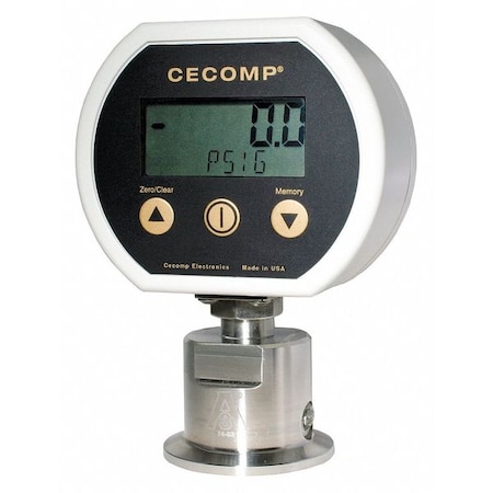 Cecomp / API - DSGB320N30V15PSIG - 30 to 0 to 15 In. Hg/psig Digital Sanitary Compound Gauge, 3 Dial, 2 Triclamp Connection, Plastic