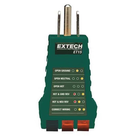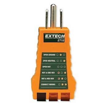 Extech Instruments Receptacle Tester, 3-Wire - ET15