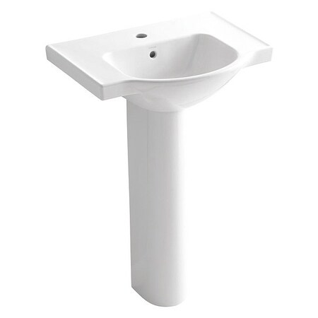 KOHLER K-5266-1-0 VEER 24 INCH PEDESTAL BATHROOM SINK WITH ONE HOLE DRILLED AND OVERFLOW, WHITE