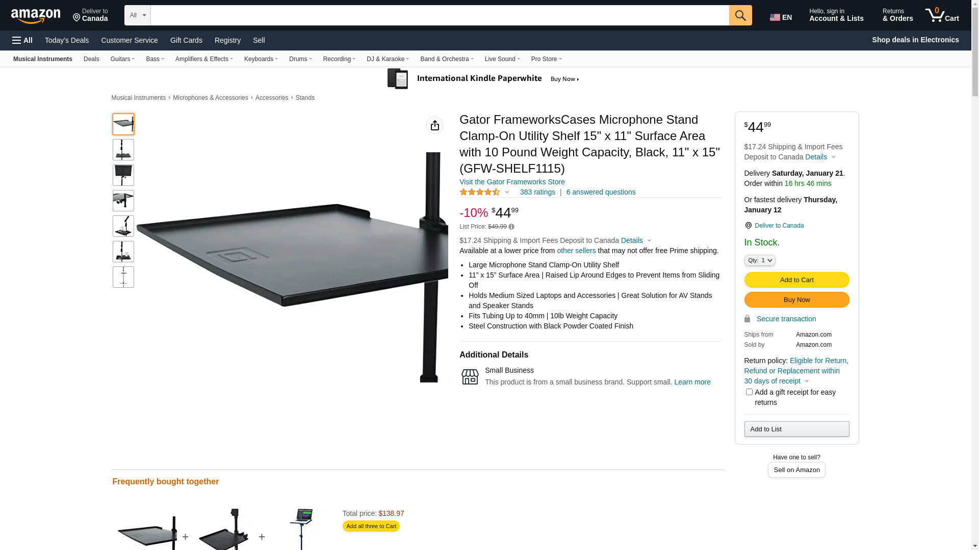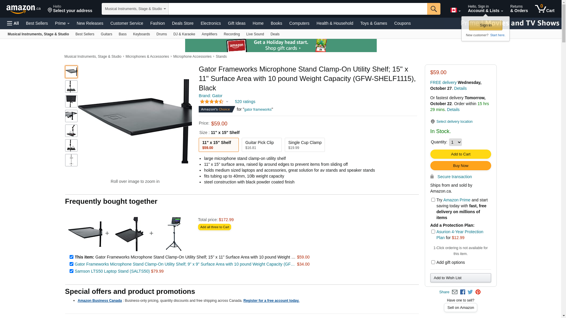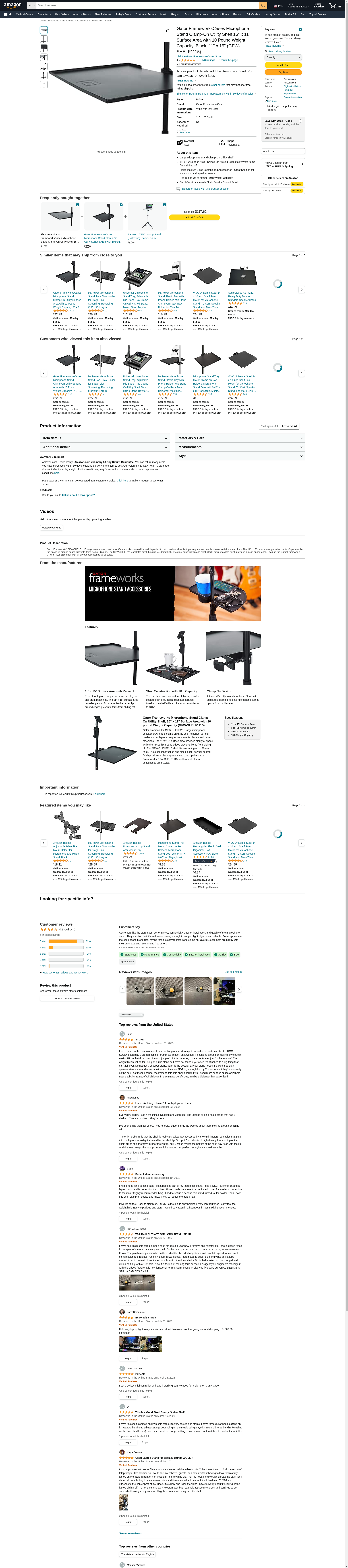 Buy the Gator GFW-SHELF1115, Large microphone stand clamp-on utility shelf, capacity up to 10lbs. at Full Compass Systems. 0% Financing and Free Shipping on thousands of items!