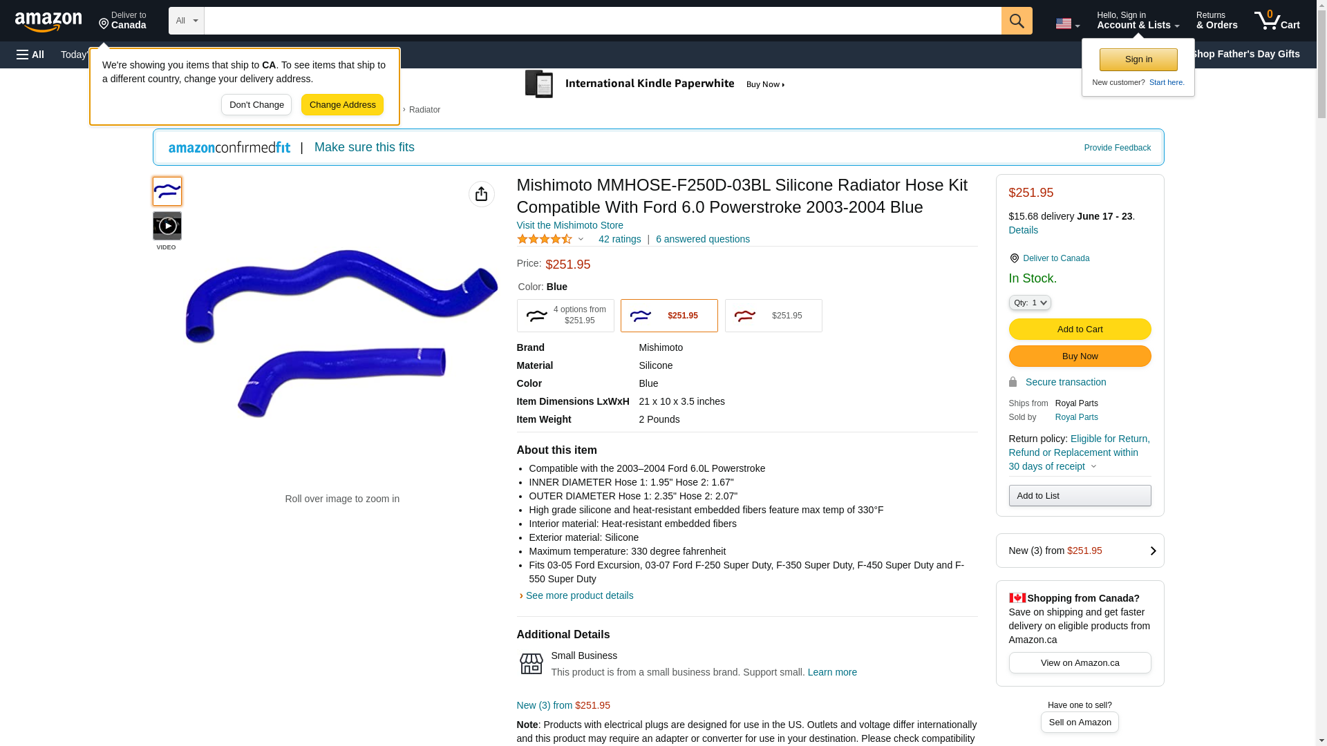 ![]() automotivestuff.com | MISHIMOTO-MMHOSE-F250D-03BL | 1 | -2 | 1 | 1 @ $264.55 |