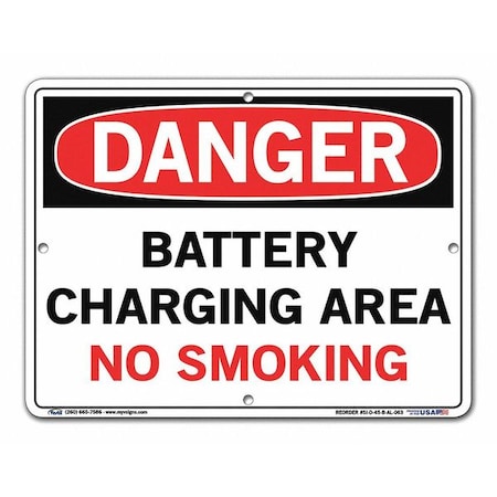 Vestil SI-D-45-B-AL-063 BATTERY CHARGING AREA NO SMOKING Danger Sign, Aluminum, 0.063" Overall Size, 12.5" W x 9.5" H