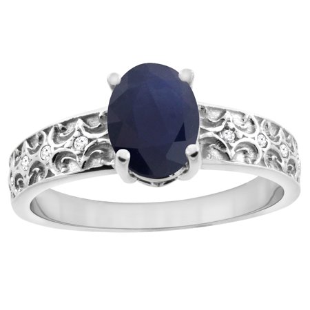 10K White Gold Natural Blue Sapphire Ring Oval 8x6 mm Diamond Accents, sizes 5 - 10