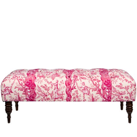 SKY14719 <br /> <b>Features</b> <br /> <ul> <li>Made in the USA</li> <li>Spot clean only</li> <li>Color: CV Toile Blush</li> <li>Country of Manufacture: United States</li> <li>Bench Type: Bedroom bench</li> <li>Main Material: Wood</li> <li>Color: Espresso</li> <li>Pattern: Floral</li> </ul> <br /> <b>Dimensions</b> <br /> <ul> <li>Overall Height - Top to Bottom: 18"</li> <li>Overall Width - Side to Side: 50"</li> <li>Overall Depth - Front to Back: 20"</li> <li>Overall Product Weight: 23 lbs</li> </ul> <br /> <b>Assembly</b> <br /> <ul> <li>Assembly Required: Yes</li> </ul>