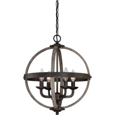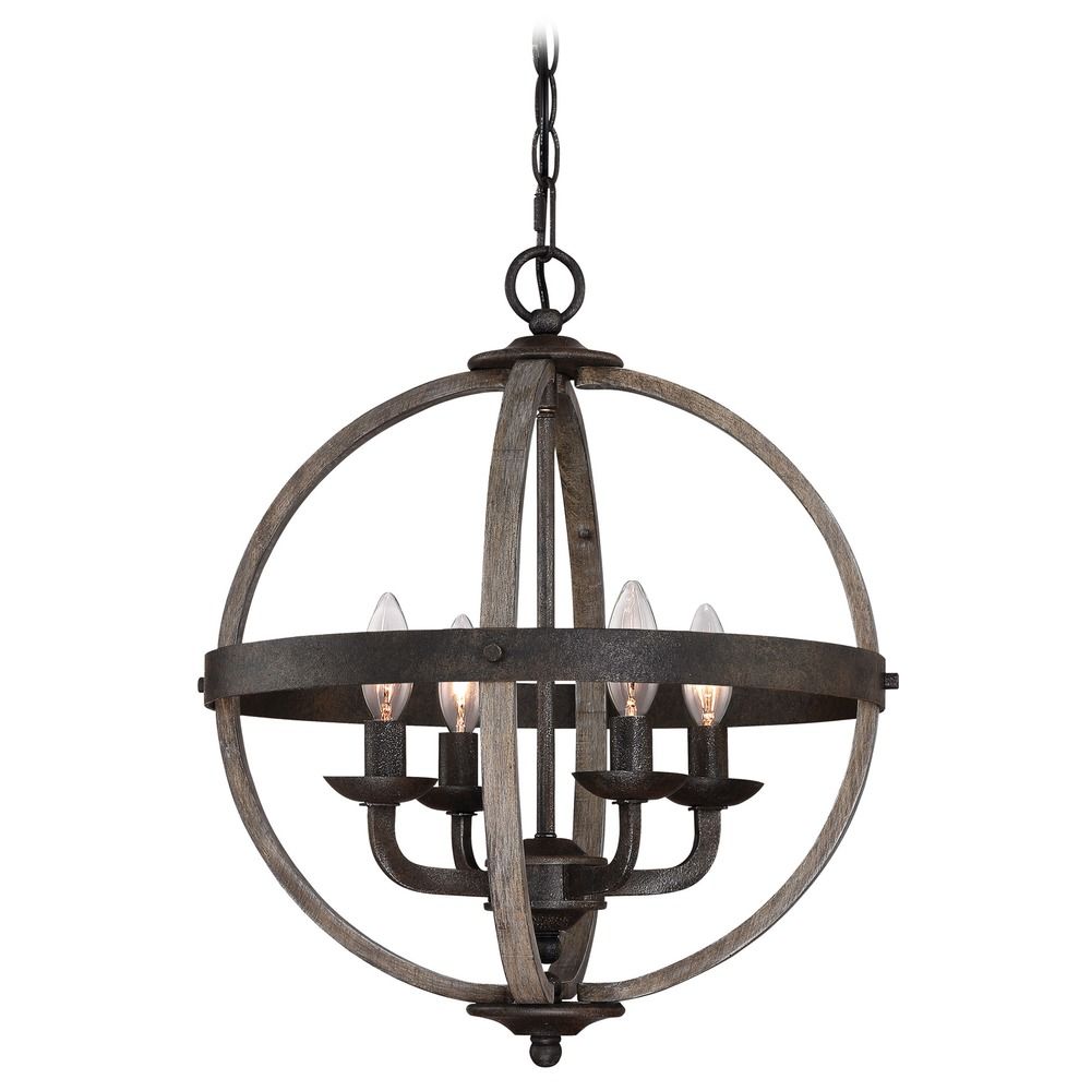 Quoizel FSN5204RK Fusion Industrial Wrought Iron and Faux Wood Chandelier, 4-Light, 240 Watts, Rustic Black (20" H x 17" W)