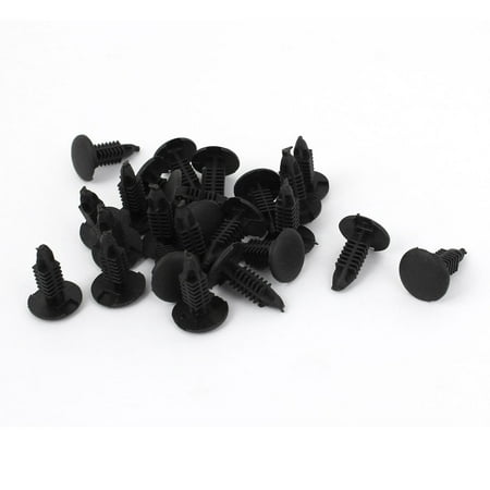 <li>Head Diameter(max.): 12mm/0.4"; Stem Length: 17mm/0.7"; Total Length: 19mm/0.7"</li> <li>Quantity: 24; Interchange Part Number: Under Engine Splash Guard Rivet Fastener Clips; Manufacturer Part Number: Plastic Push-Type Bumper Retainer Clip</li> <li>Other Part Number: Screw Fender Body Door Trim Panel Hood; Applications1: Defender Door Card Interior Weatherstrip Moulding; Applications2: NYLON CHRISTMAS TREE Carpet Floor Mat Clips</li> <li>Material: Plastic; Package Content: 24 x Nylon Rivets</li>