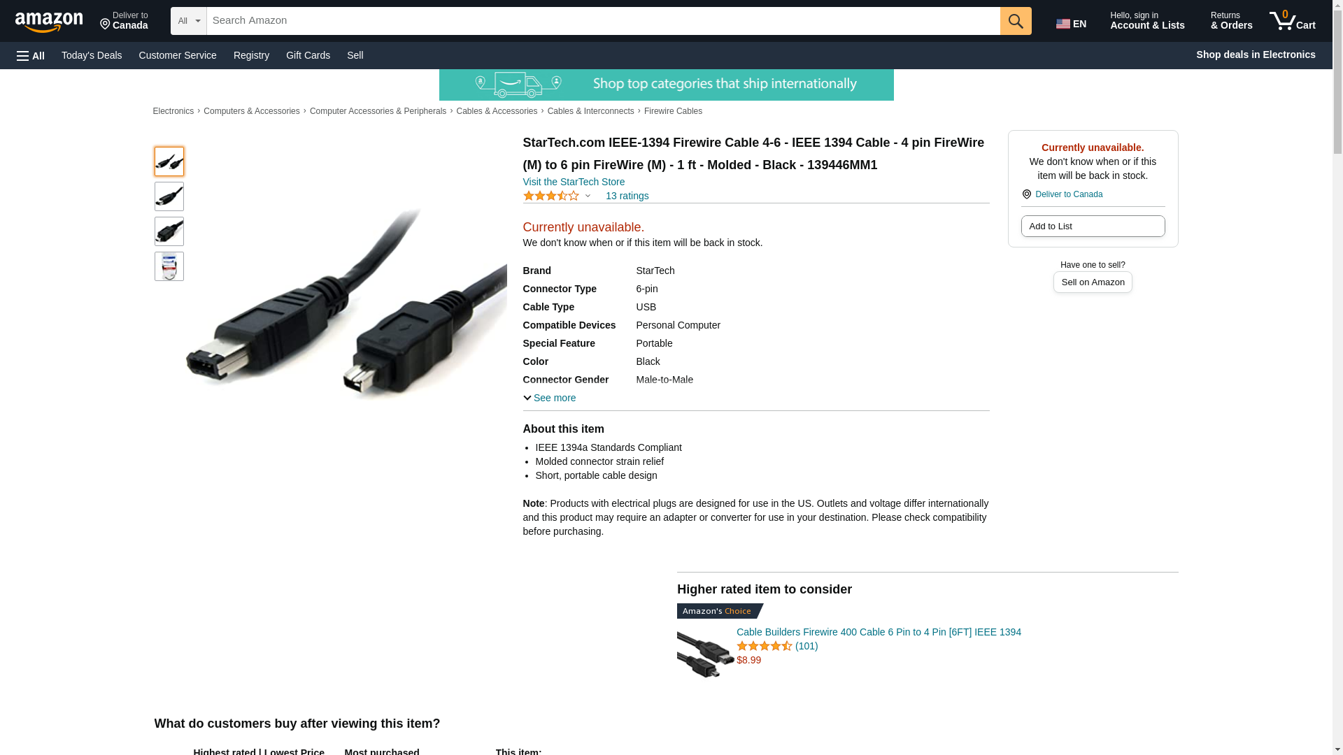 STARTECH.COM 139446MM1 / 1 ft IEEE-1394 Firewire Cable 4-6 M/M /4PIN TO 6PIN IEEE-1394 FIREWIRE 400 CABLE