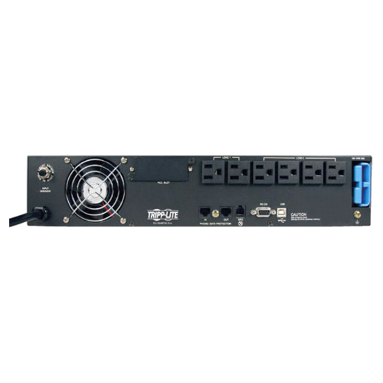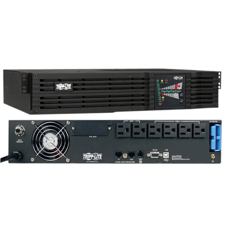 1500VA online, double-conversion UPS system for critical server, network and telecommunications equipment. 2U rackmount form factor with an installed depth of only 19 in. Expandable battery runtime with optional BP48V24-2U and BP48V60RT-3U external battery packs. Full-time sine wave 100, 110 or 120V +/-2% output. Uninterruptible Power Supply (UPS) actively converts raw incoming AC power to DC, then re-converts output back to completely regulated, filtered AC output. Operates continuously without using battery power during brownouts to 65V and overvoltages to 138V. NEMA 5-15P input plug and NEMA 5-15R output receptacles. Network-grade AC surge and noise suppression. Zero transfer time between AC and battery operation. Network management interfaces support simultaneous communications via USB port, DB9 serial port and SNMPWEBCARD slot. HID-compliant USB interface enables full integration with built-in power management and auto shutdown features of Windows, Mac OS X and Linux. Supports simultaneous detailed monitoring of equipment load levels, self-test data and utility power conditions via all 3 network interfaces simultaneously. Includes PowerAlert monitoring software and complete cabling. Emergency Power Off (EPO) interface. Integrated two-bank PDU switching supports load shedding and remote reboot of connected equipment. Three-stage metered current monitoring and battery charge status LEDs. Dataline surge suppression for dialup, DSL or network ethernet connection. Utility power and voltage regulation LEDs. Audible alarm. Self-test. Fault-tolerant auto-bypass mode. 4-post rackmount accessories included; 2-9USTAND tower kit and 2POSTRMKITWM 2-post rack & wallmount accessories available. Field replaceable, hot-swappable internal batteries and external battery packs. Attractive all-black color scheme. Two-year warranty and $250,000 connected equipment insurance; extended warranty and service contracts available.
