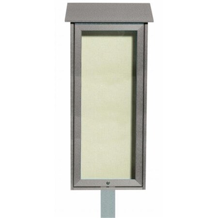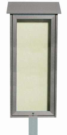 Aarco Outdoor Light Grey Top Hinged Single Door Cork Board 34"H x 16"W with Post