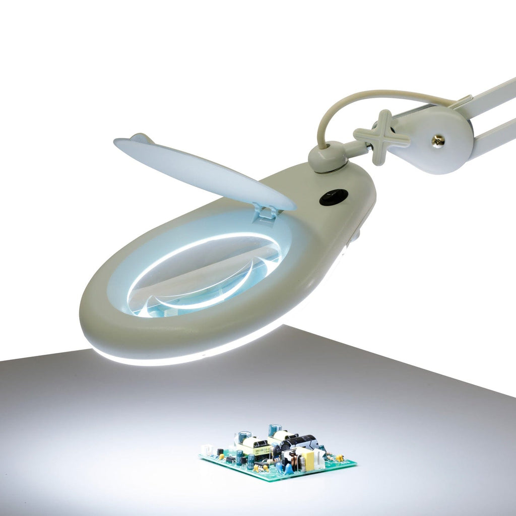 - This 1.75X magnification 3 diopter magnifying lamp can rotate 360 degrees and using the articulating arm can be perfectly positioned for any task at home, in the office or in any industrial inspection application.